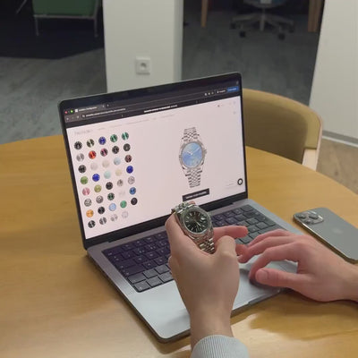 Elige la caja, la esfera, las agujas y la correa en nuestro configurador. Ve tu creación en tiempo real.