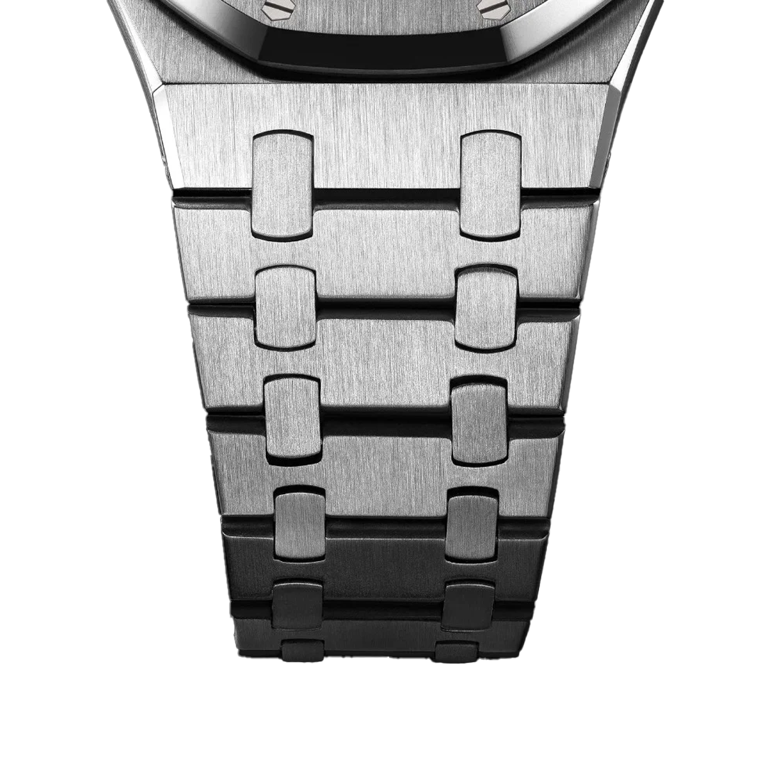 El personaje Apex captura la esencia de la relojería deportiva de lujo moderna: geometría nítida, presencia audaz y artesanía sin compromisos. Definido por su icónico bisel octagonal, tornillos expuestos y cepillado vertical preciso, este diseño combina la fuerza industrial con la elegancia refinada. Su flujo integrado de caja a brazalete ofrece una identidad arquitectónica distintiva, mientras que sus proporciones deportivas pero sofisticadas lo hacen instantáneamente reconocible. La estética inspirada en Apex aporta un sentido único de prestigio, estructura y estilo contemporáneo a cualquier reloj, perfecto para quienes aprecian un diseño que es a la vez atemporal y audaz.