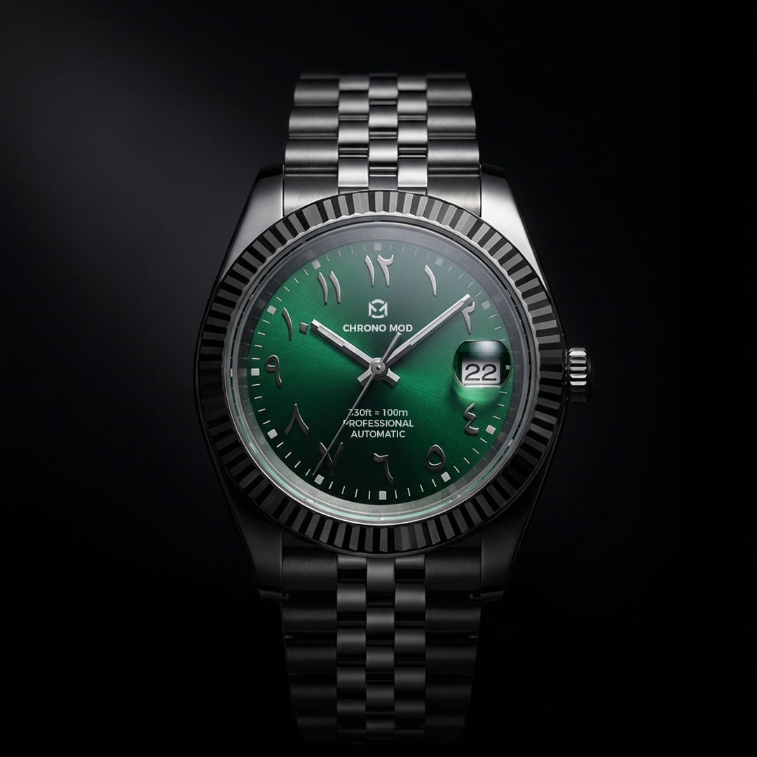 Classic Date – Esfera árabe verde Profesional