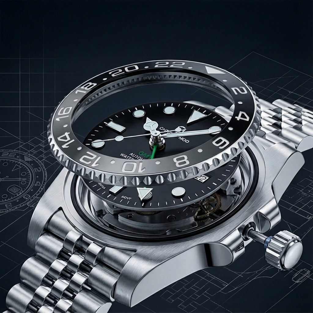 Este icónico bisel GMT combina un contraste audaz con funcionalidad diaria. La inserción de cerámica separa el día y la noche de un vistazo, mientras que las nítidas graduaciones de 24 horas garantizan una legibilidad perfecta en múltiples zonas horarias. Elegante, duradero y resistente a los arañazos, ofrece una estética moderna de reloj herramienta con un acabado refinado — el bisel esencial para viajeros, profesionales y entusiastas del GMT que buscan tanto estilo como precisión.