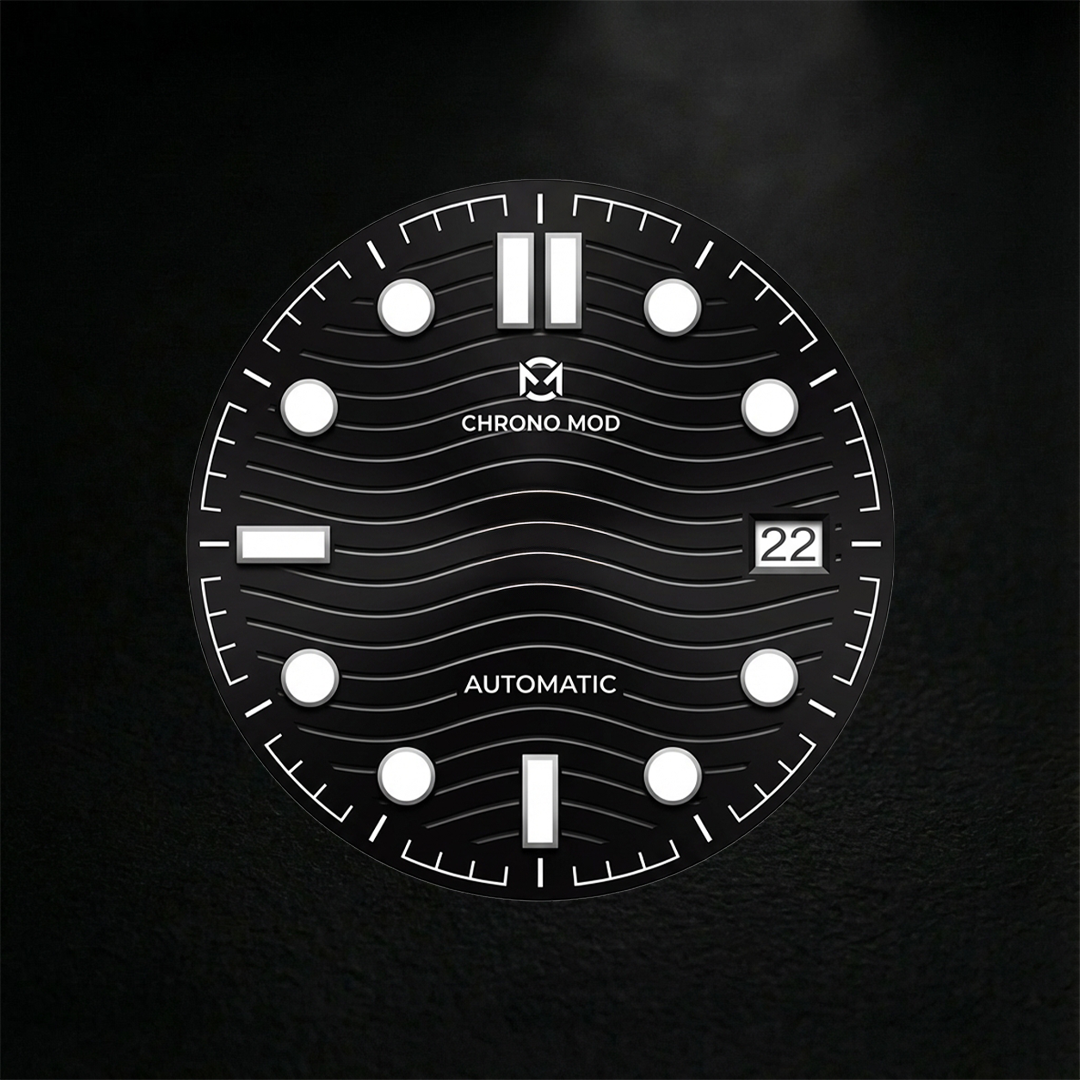 El Esfera Ondulada es la firma definitoria del Oceanmaster: una superficie refinada y esculpida inspirada en las corrientes oceánicas cambiantes. Su patrón de ondas tridimensional capta la luz desde todos los ángulos, creando un juego dinámico de sombras y reflejos que da vida a la esfera.