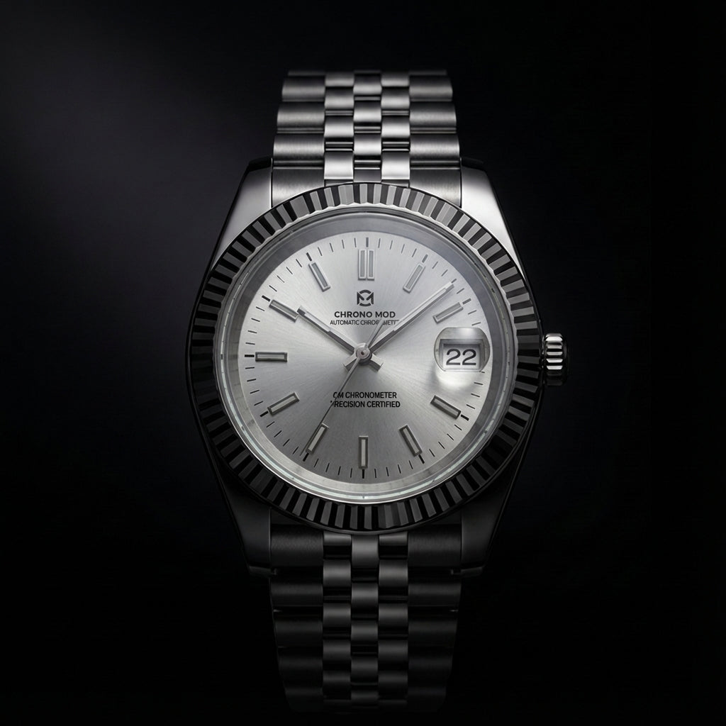 La Bezel est un élément emblématique de l'horlogerie intemporelle, défini par ses facettes nettes qui captent la lumière et son élégance incontestable. Façonnée en acier inoxydable 316L poli, ses rainures raffinées reflètent la lumière avec une brillance distinctive, conférant à la montre une présence sophistiquée et immédiatement reconnaissable. Plus qu'un détail de design, la lunette incarne l'héritage, la précision et le prestige — une esthétique classique qui élève chaque garde-temps avec un luxe durable.