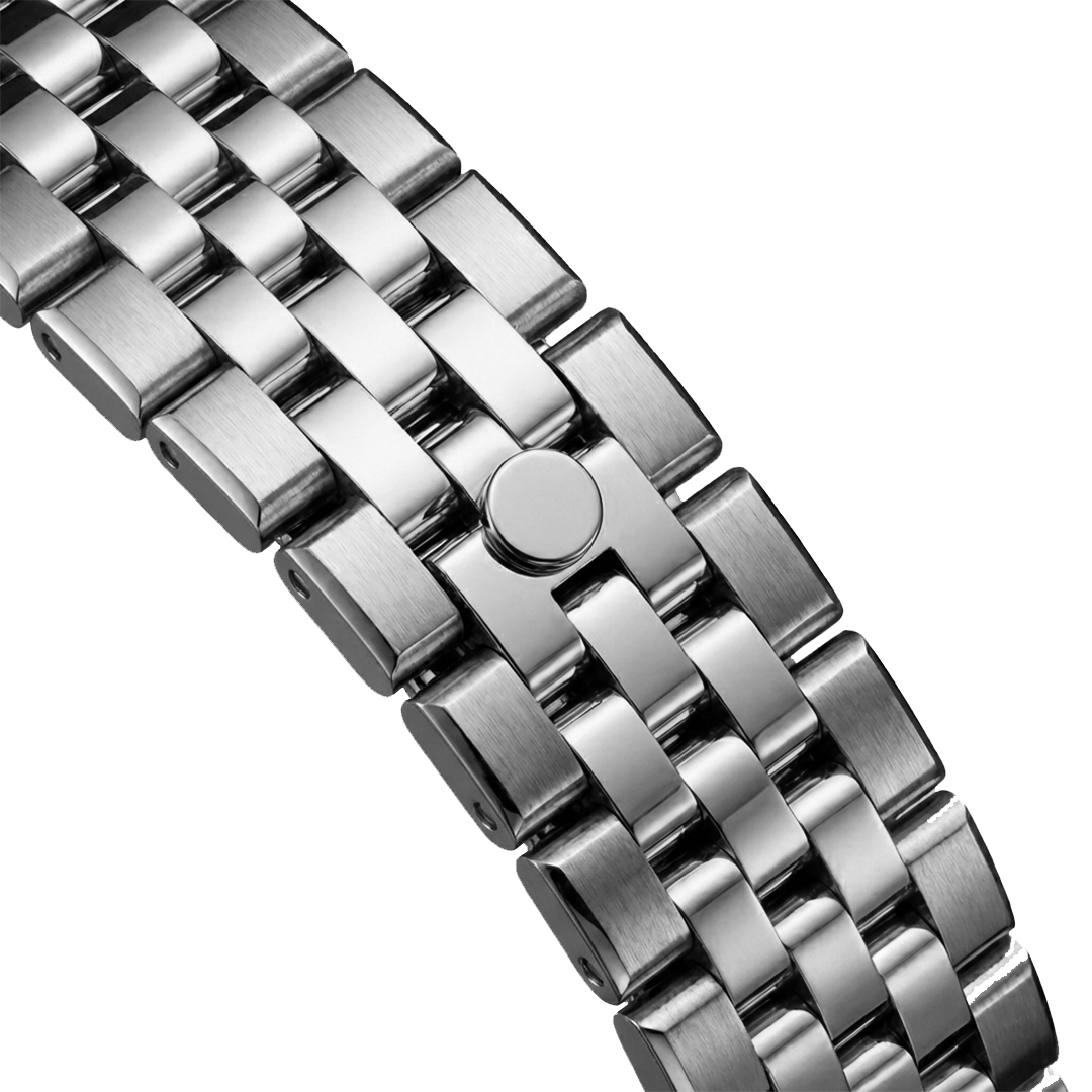 Il Bezel è un elemento distintivo dell'orologeria senza tempo, definito dalle sue sfaccettature nette che catturano la luce e da un'eleganza inconfondibile. Realizzato in acciaio inossidabile 316L lucidato, i suoi raffinati solchi riflettono la luce con una brillantezza distintiva, conferendo all'orologio una presenza sofisticata e immediatamente riconoscibile. Più di un dettaglio di design, il bezel incarna eredità, precisione e prestigio — un'estetica classica che eleva ogni orologio con un lusso duraturo.