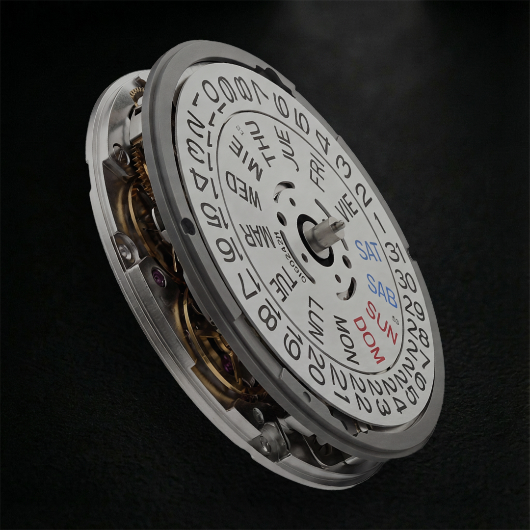 Il Seiko NH36 è un movimento automatico affidabile che presenta una funzione Giorno-Data fluida, arresto dei secondi e carica manuale per una regolazione precisa dell'ora. Conosciuto per la sua durata e prestazioni costanti, offre una riserva di carica di 41 ore e una comprovata affidabilità quotidiana — un calibro di fiducia costruito per durare.