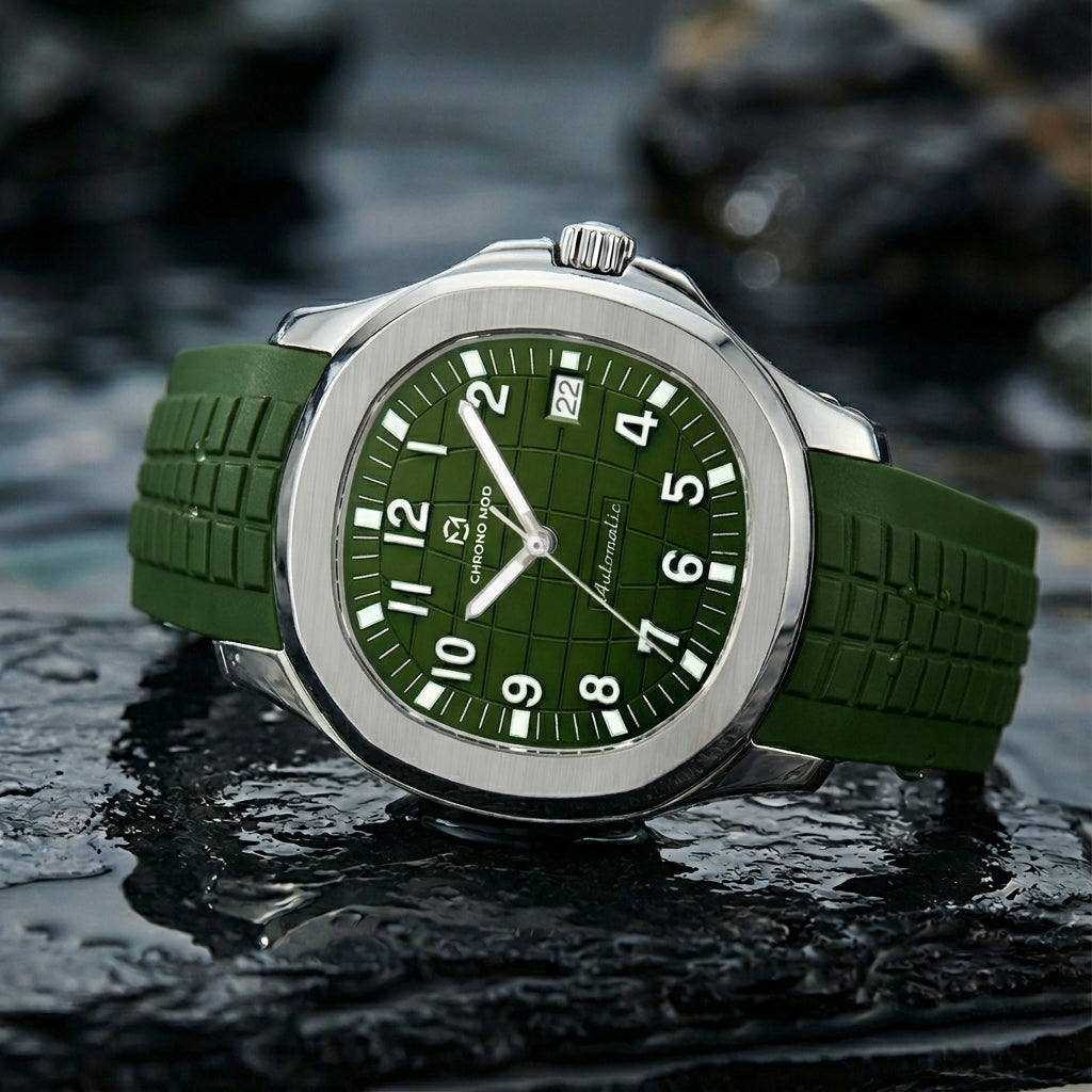 Each Chrono Mod Horizon – Green Dial 42mm is hand-assembled and tested for precision, durability, and bold character. A modern interpretation of sport elegance built for everyday confidence.