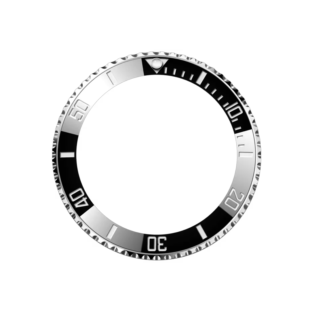 Crafted in polished 316L stainless steel with a deep ceramic-style insert, this bezel delivers the iconic diver look — bold, precise, and timeless. Its unidirectional rotation ensures reliable timing, while the crisp engraved markers and luminous triangle offer instant legibility in any condition. A classic tool-watch bezel built for durability, clarity, and everyday performance.